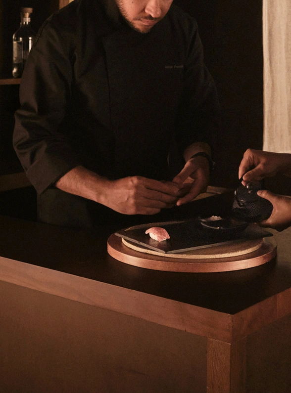 At 18, he crossed the Atlantic to train in Dublin, where he worked in all stations at the Green Hen restaurant under chefs Sweetie and Ritz. Everything changed at 23, when he enrolled at the Aranda school in Madrid and worked in Dabiz Muñoz’s restaurants. Alongside chefs Balo Ortiz at StreetXo and Antonio Villodre at GoXo, he refined his sensitivity to detail and product.