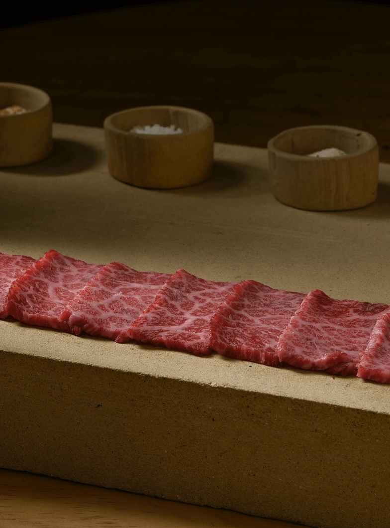 Ito Ranch es la única granja del mundo cuya carne exige licencia para ser servida. Los establecimientos deben cumplir requisitos estrictos y completar una formación para obtener la simbólica estatua de la vaca negra. Akaneya es el primer restaurante fuera de Japón en lograrlo.